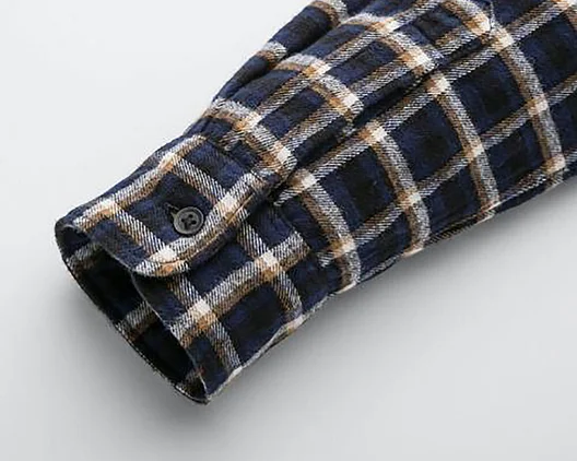 The texture is relatively firm and the details are exquisite. It's a classic flannel shirt.